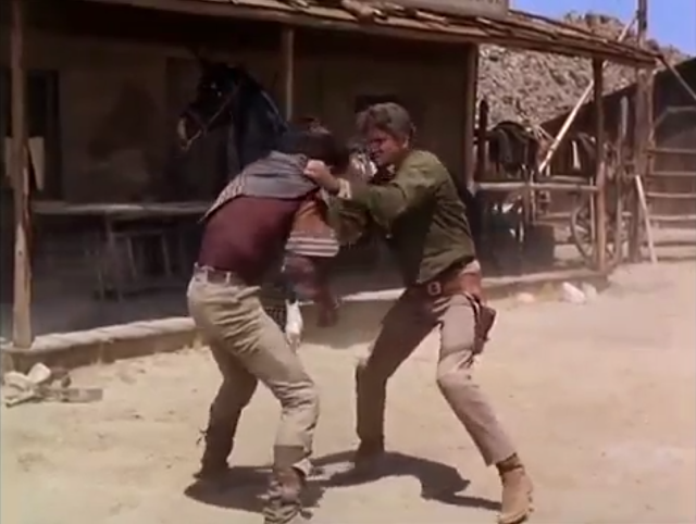 That's right — Little Joe gets into one of his many "Bonanza" fistfights, probably his only one in Lake Los Angeles.