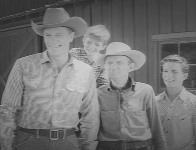 This screen shot from season five includes young Roger Mobley, who joined the show as a series regular in season four, playing Joey's friend Packy. In this shot everyone's presumably watching Fury do something smart.